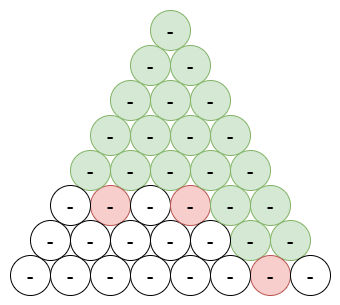 이거 남미 ICPC 문제 번역한 건데 문제가 조금 이해하기 어렵습니다. [그 공의 위에 있는 공을 고른 경우에만 그 공을 고를 수 있다.] 부분이 무슨 말인가 싶은데 배치를 보면 왼쪽, 오른쪽 변에 위치한 공을 제외한 모든 공은 위에 두 개의 공이 있습니다. 왼쪽, 오른쪽 변에 있는 공들은 한쪽이 없으니 한 개, 맨 위 꼭대기에 있는 공은 위에 공이 없습니다. 가장 꼭대기에 있는 공은 위에 공이 없으니 그냥 선택할 수 있습니다. 왼쪽, 오른쪽 변에 있는 공들은 바로 위에 있는 하나의 공이 선택되었다면 선택할 수 있습니다. 나머지는 위에 있는 양쪽 공이 모두 선택되어야 선택할 수 있습니다.
