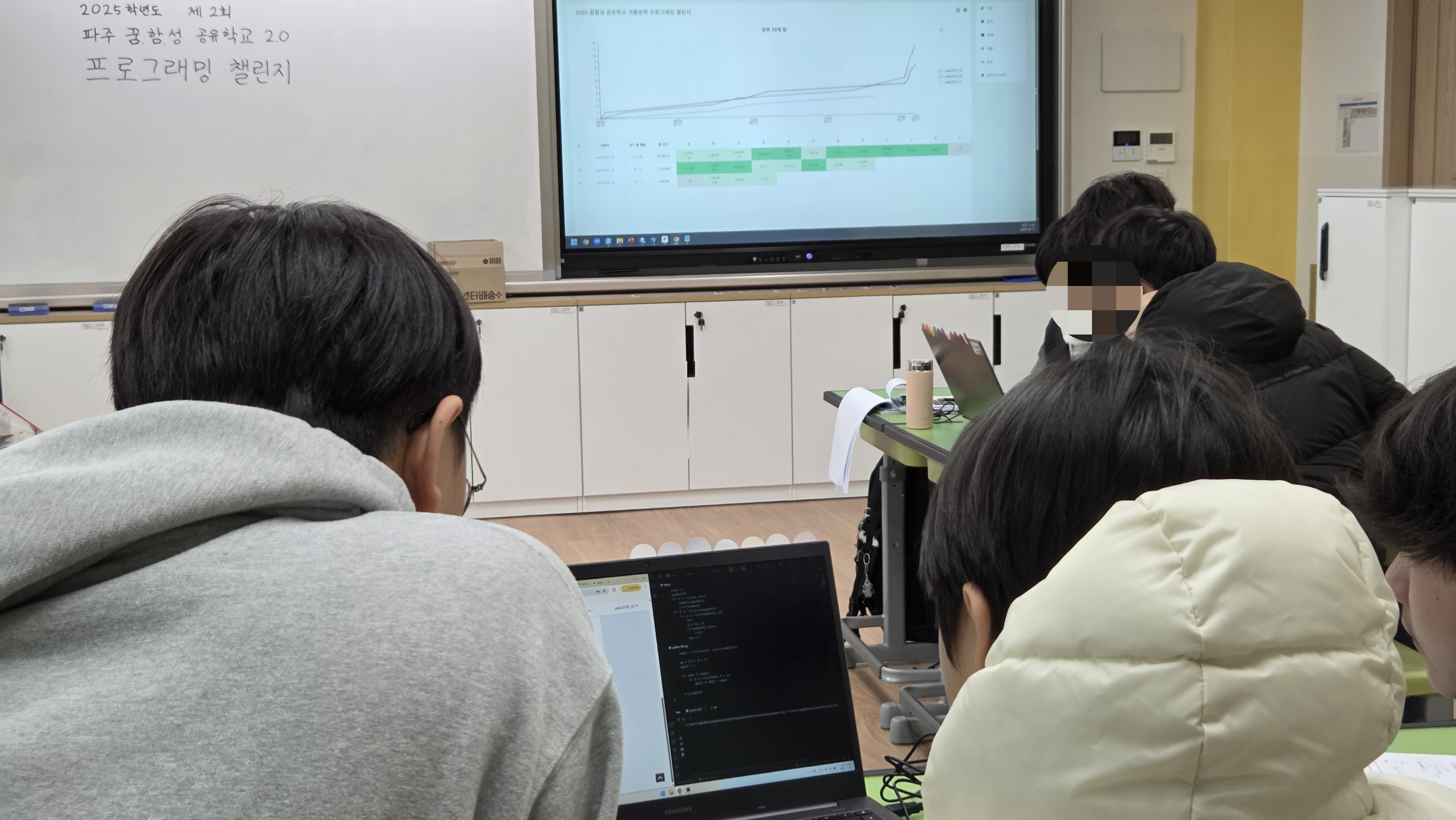 수업의 마지막은 항상 대회로 구성하고 있다. 이번에는 풍선을 준비할 여력이 없어 스티커로 문항 해결을 표시해주기로 했다. 저 난이도 4문제, 단순 구현 2문제에 수업으로 배운 알고리즘 이론을 적용해 풀 수 있는 3문제를 제시했다. 이렇게만 문제를 던져주면 절대 모두 해결할 수 없기 때문에 총 160분의 시간에서 120분은 AI를 사용하지 않고 풀다가 순위표를 저장하고 남은 40분 동안 AI를 사용하도록 해주었다. 다만 AI로 문제를 해결하면 시간이 오히려 남기 때문에 추가로 3문제를 더 준비했다.