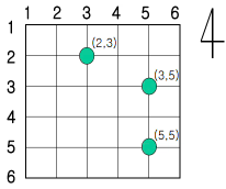 예를 들어 앞의 그림처럼 N=6인 경우, 처리해야 하는 사건들이 3개 있고 그 사건들이 발생된 위치 를 순서대로 (3, 5), (5, 5), (2, 3)이라고 하자. (3, 5)의 사건을 경찰차2에 맡기고 (5, 5)의 사건도 경찰차2에 맡기며, (2, 3)의 사건을 경찰차1에 맡기면 두 차가 이동한 거리의 합은 4 + 2 + 3 = 9가 되 고, 더 이상 줄일 수는 없다.